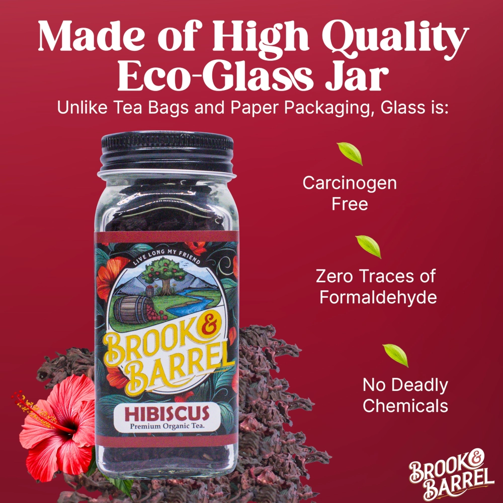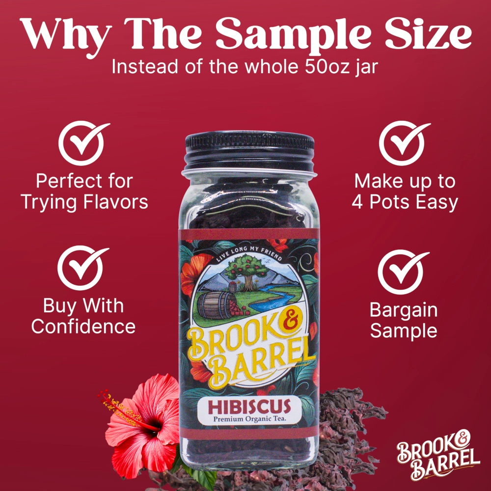 Brook & Barrel Loose Leaf Organic Hibiscus Tea Sample – USDA Certified Organic Herbal Tea in 6oz Glass Jar, Caffeine-Free Floral Tart Tea