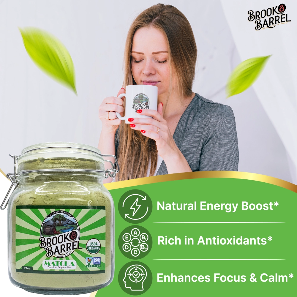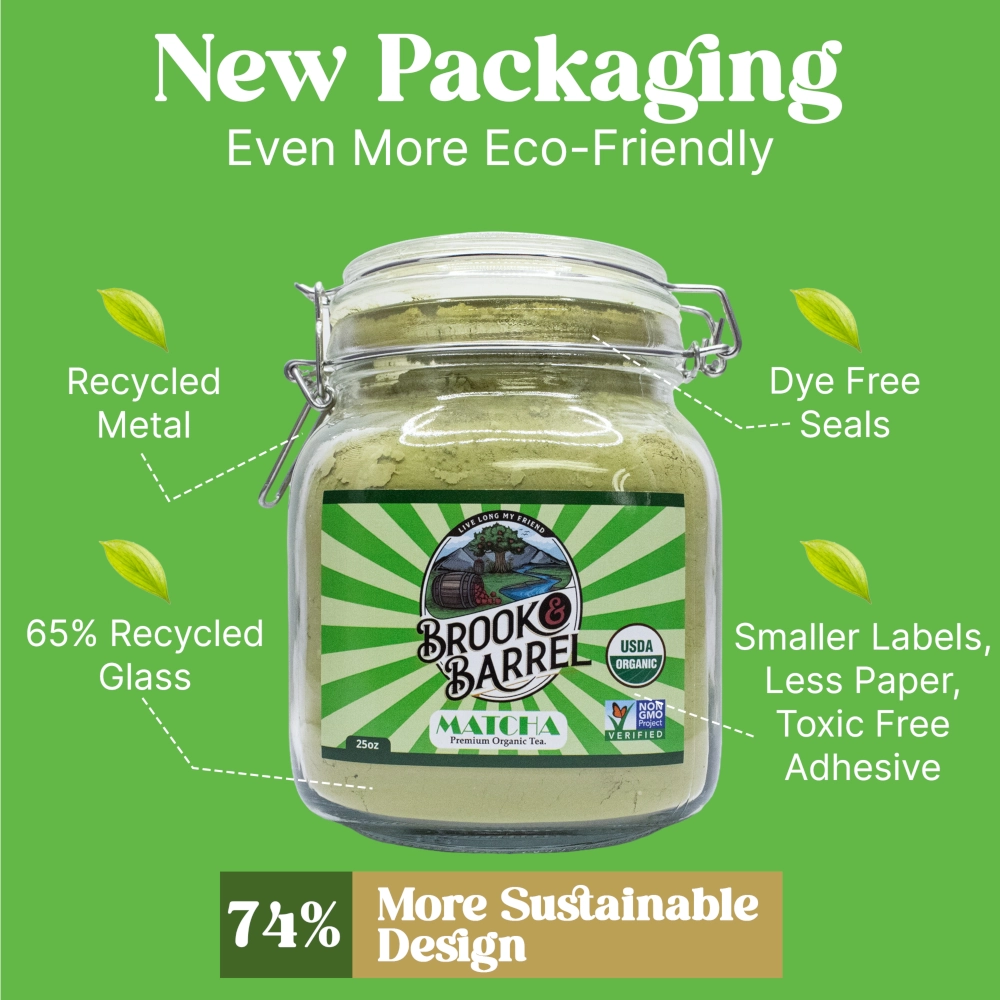 1.6lbs USDA Organic Ceremonial Matcha Tea – Glass Jar (Brook & Barrel Tea)