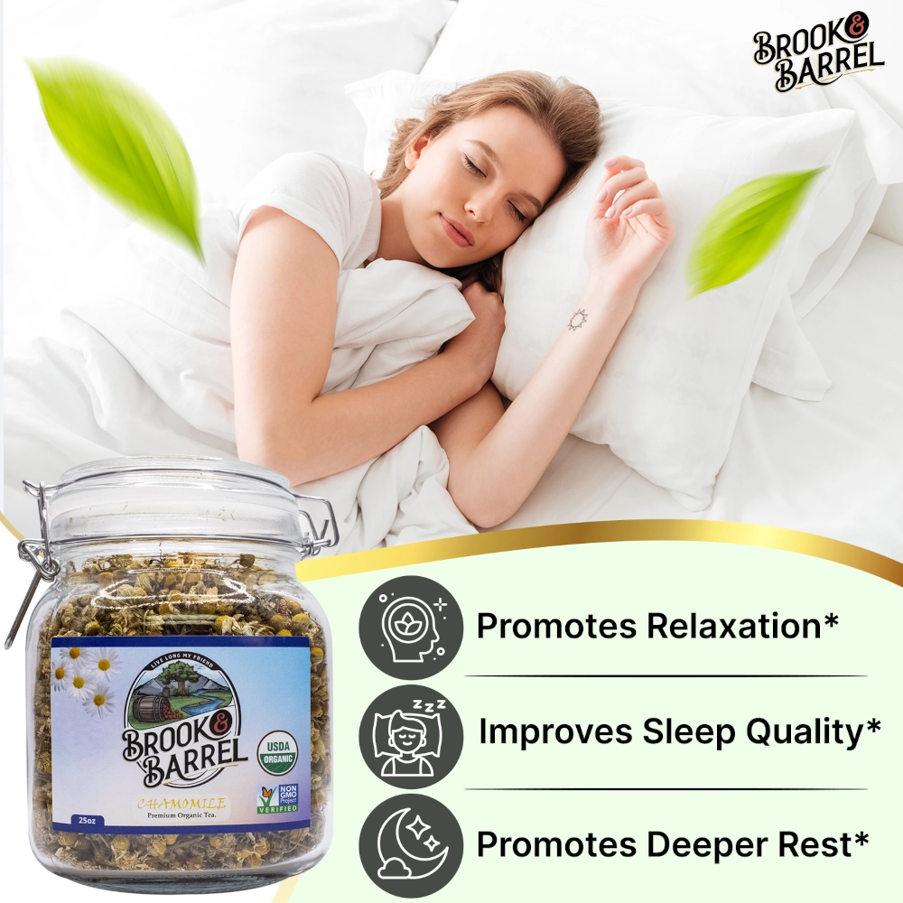 This golden elixir has a history of being used as a sleep deprivation remedy and can induce deeper sleep and cause more vivid dreams. Are you are in search of a soothing and revitalizing tea experience? Then Brook & Barrel USDA organic loose leaf chamomile tea is for you.